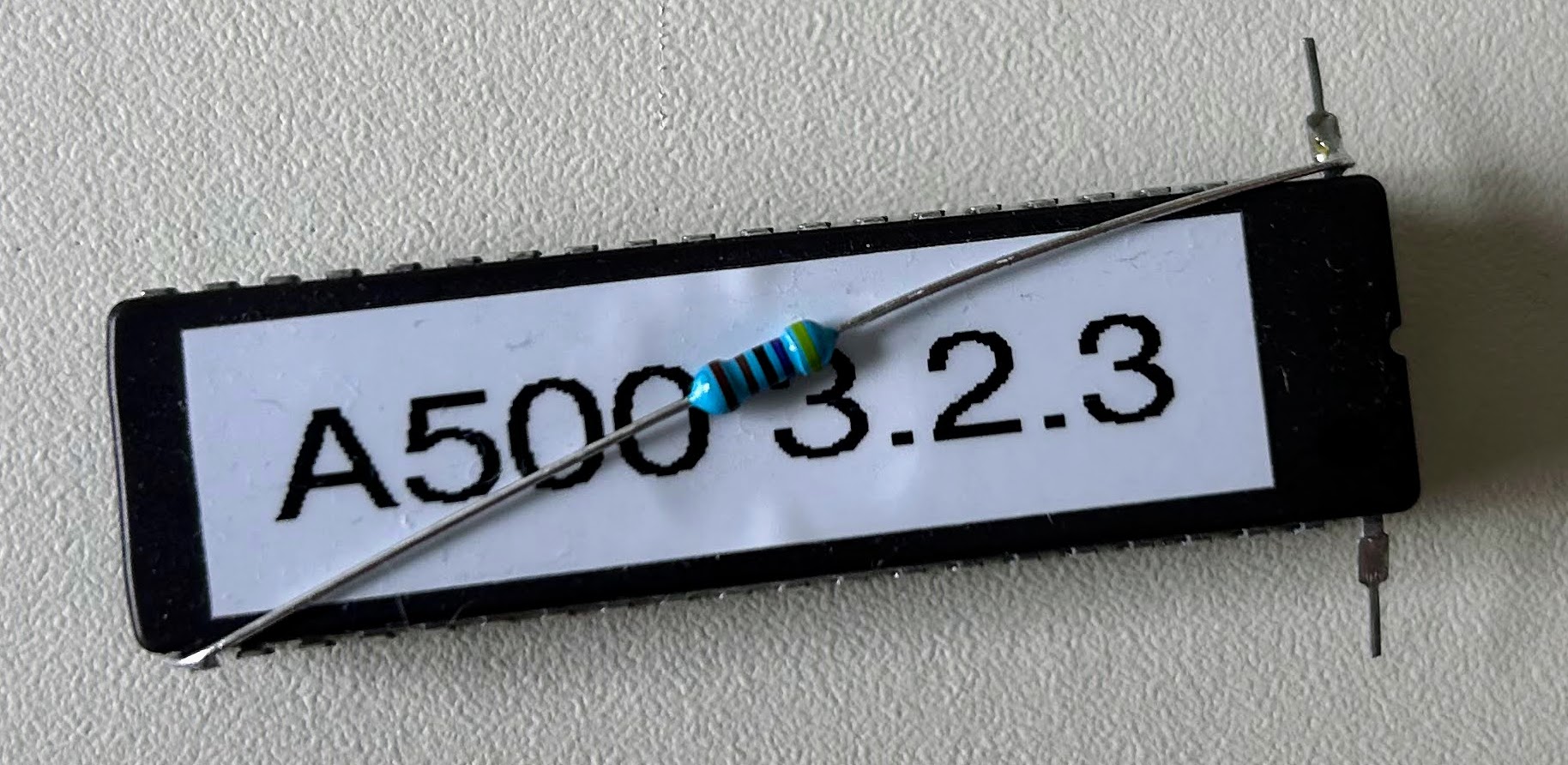 My first attempt involved bending out pins 1 and 42 so that they would not make contact when plugged in. I soldered a 4.7k resistor between pings 1 and 22. Grounding ping 1 or not allows you to switch between ROM images. Not pretty but I could switch between ROM images which made troubleshooting a faulty A500 easier as I had both DiagROM and Kick Start 1.3 on the same 27C800 EPROM.